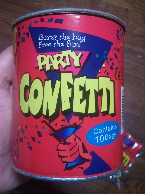 Un lot exceptionnel de 19 boites contenant chacune une dizaine de sachets explosifs contenant chacun des centaines de confettis (ce qui fait beaucoup de confettis).