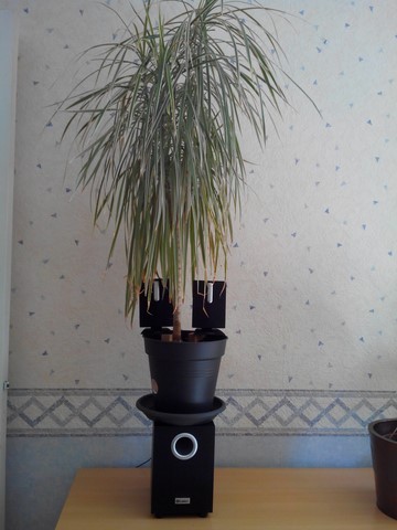 Comme vous pouvez le constater sur la troisième photographie, grâce à la douceur et le pureté du son qui en découle, la plante verte offerte par ma belle-soeur s'est remarquablement épanoui.