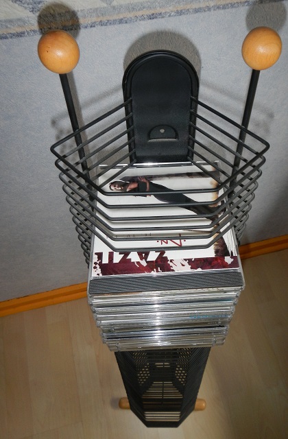 Cette tour n'a jamais contenu d'objets en rapport avec Jacques Higelin, n'est pas destinée à ranger uniquement des boitiers de disques de Zazie comme pourrait le laisser suggérer la seconde photographie, et peut également contenir des disques dans les emplacements non utilisés sur les photographies, dans la limite de 64 unités.